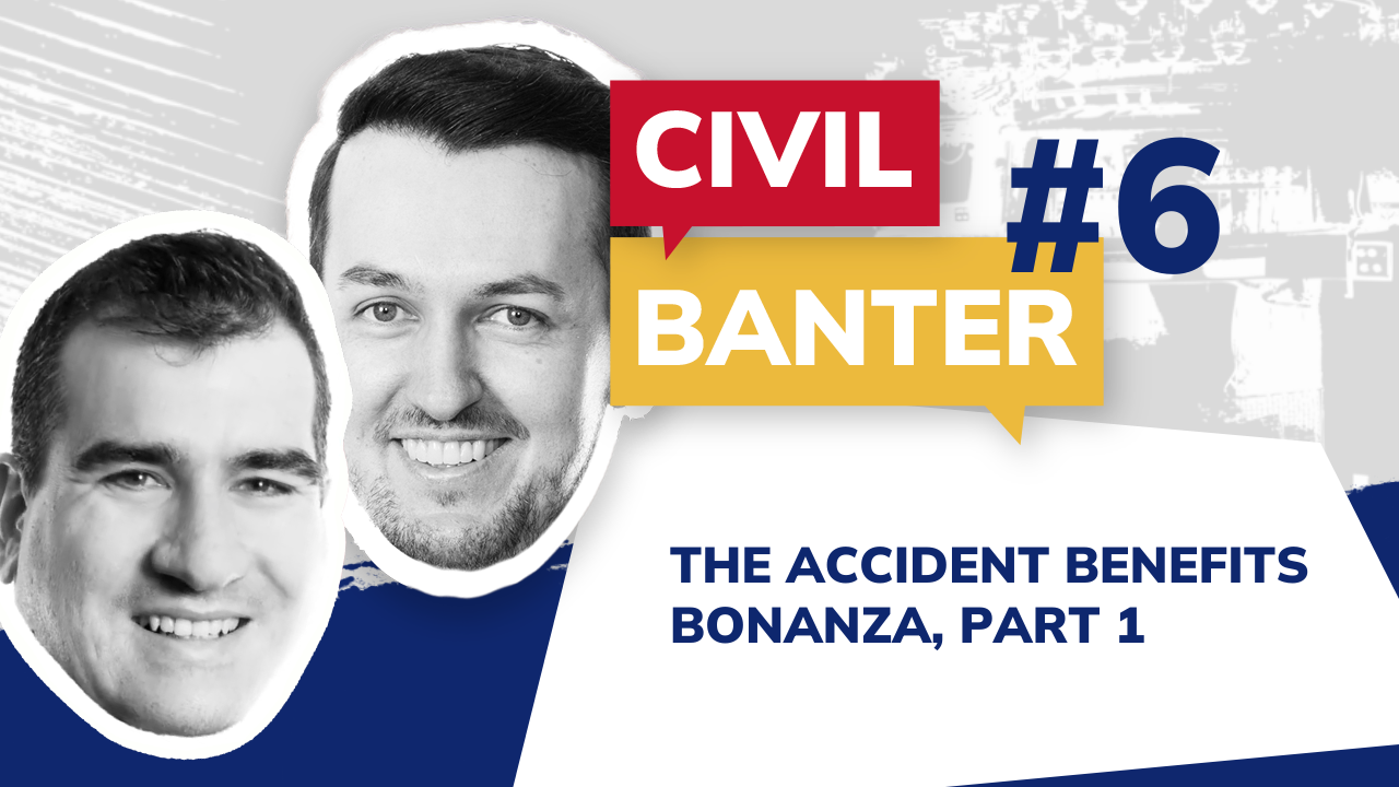 In this episode of Civil Banter, our hosts Hamish and Stan take a deep dive into the Ontario accident benefits system including how it works, who it applies to, and why it’s such a critical (and often overlooked) part of our insurance framework.