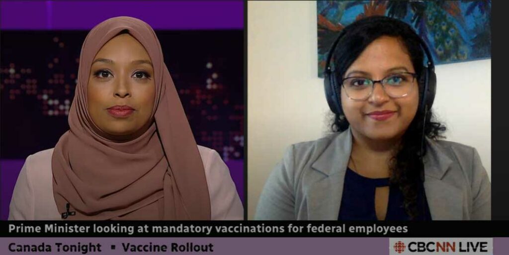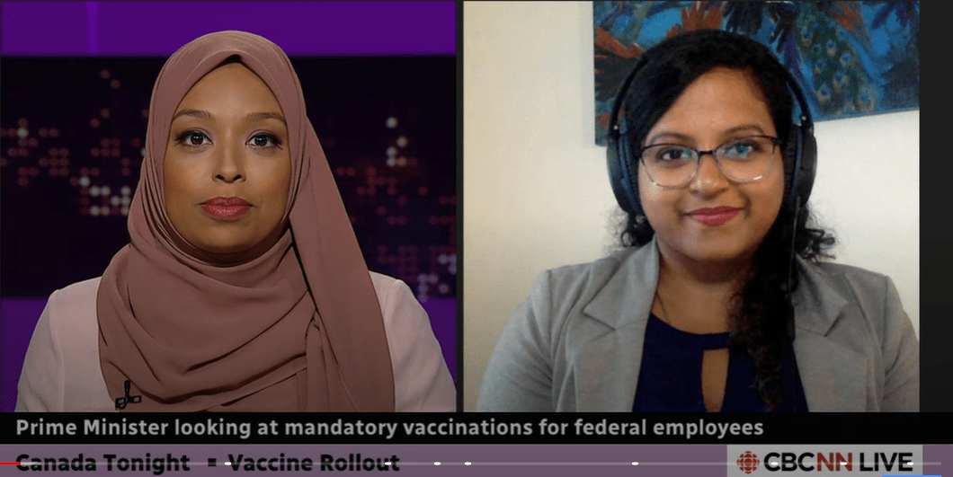Can employers mandate vaccines for their employees? Watch as Malini Vijaykumar joins Ginella Massa on CBC’s Canada Tonight to discuss the legal considerations around the question that is top of mind for many: